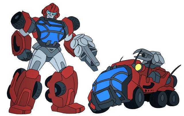 铁皮,以其可靠的保镖形象深入人心。新设计里,红色为主色调,搭配蓝色与灰色,凸显出他的坚毅。人形时,厚重的装甲和充满力量感的肢体,传达出强大的防御能力与战斗力。载具形态的装甲车,棱角分明,武器装备暗藏其中,就像铁皮默默守护伙伴的姿态,低调却有着不容小觑的威慑力,是汽车人阵营中坚固的护盾。