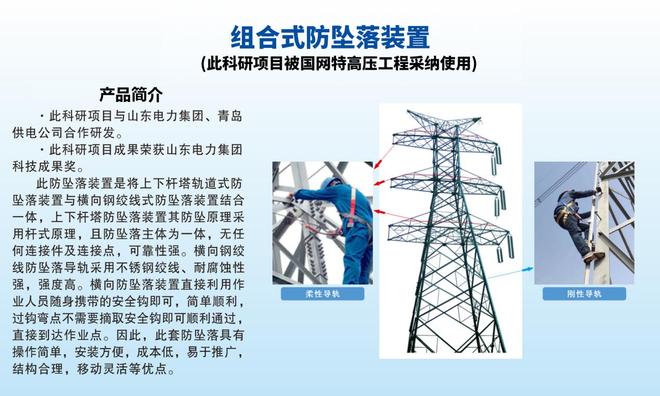 作为国内防坠落装置领域的先行者,公司自1996年启动相关产品研发,是全国首批布局该领域的企业之一。历经二十余年技术沉淀,公司成功开发并推广T型导轨式、组合式、钢管轨道型、铝包钢型及柔性导轨等五大类防坠落装置,形成覆盖多元场景的产品矩阵。目前,其产品已在全国各个省市的电力工程中广泛应用,并在“±800千伏向家坝—上海特高压直流输电线余条特高压线路工程中稳定运行,获得专家与一线工作人员的高度评价。