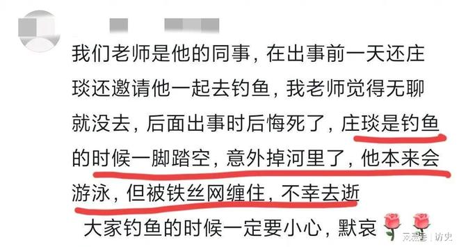 有知情人士爆料,庄老师当天曾邀请同事一起去钓鱼,但同事觉得无聊就没有去。